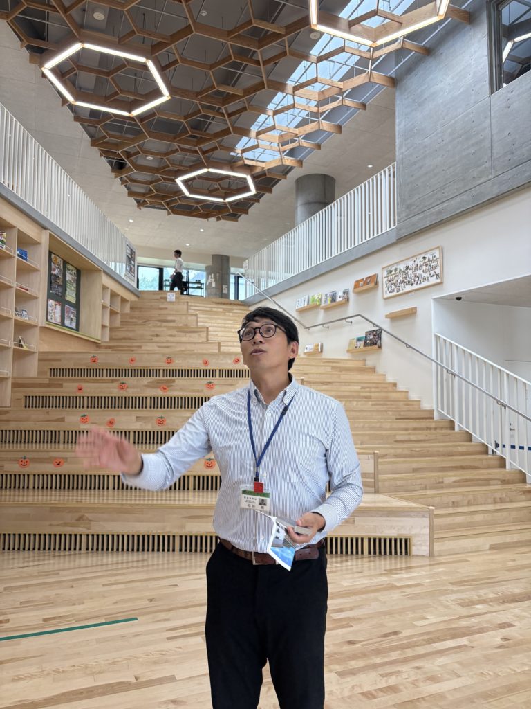 高野山学びの杜を視察しました。小学校が中心となり、複数の教育・地域施設がいったいとなった複合施設です。施設の中央に図書館があり、小中学校の図書館と公民館の図書館が融合しています。自由に本が読める空間がとても素敵でした。