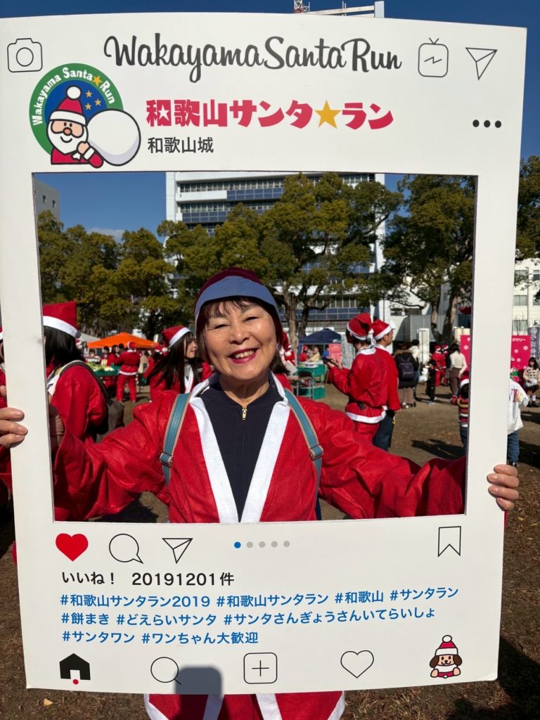 病気で入院している子ども達にクリスマスのプレゼントを贈ろうという目的で始まったサンタラン。初めて参加しました。いいお天気に恵まれニコニコしながら天守閣までウオーキングしました。