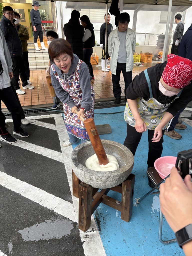 毎年恒例のお餅つき大会、みんなでワイワイ言いながら米を蒸す人、餅をつく人、餅を丸める人、たくさんのお餅ができました。お雑煮にしてみんなでいただきました。ご馳走様!